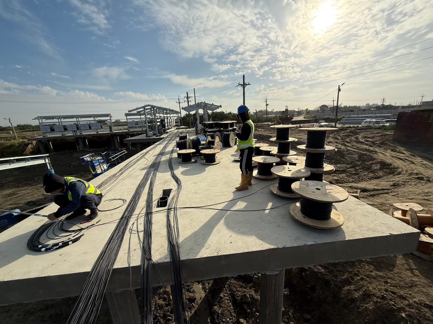 打樁、鋼骨及模組安裝、封頂安裝、環場步道安裝、太陽能電廠配電工程、各式箱體規劃與安裝、配合DC、AC、MP盤體作業測試、太陽能發電系統運轉測試